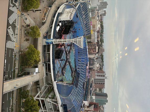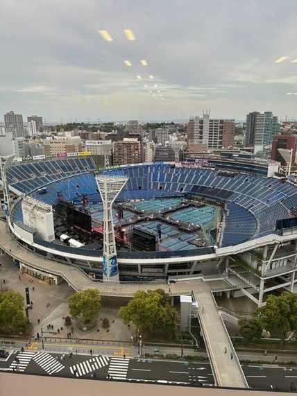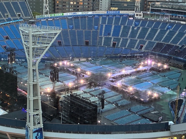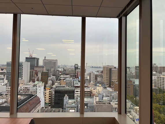 ポートラウンジやその他の窓からは横浜の景色が一望できます。横浜スタジアムも見おろせます。